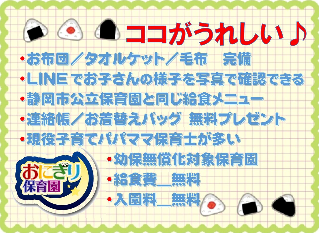 2020年06月18日 コロナ自粛解除🍙 園児再募集です 子どもたちの笑顔が 戻ってこれてよかったです♪でも、引き続き 感染予防対策に取り組んでいきましょう(^^)/🍙静岡市街中の夜間保育園🍙月極め保育→25,000〜一時預かり→1日2000円生後8ヶ月〜未就学児まで開園時間17:00〜4:00土日祝(GW.お盆.年末年始も開園)静岡市葵区駿河町1-12☎️0542925665 📲08075655889🍙LINE→ onigiri_hoikuen🍙💻HP →http://onigiri-hoikuen.com/